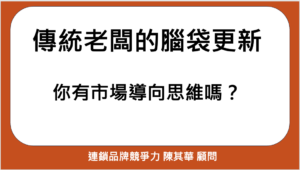 成長卡關與第二曲線 傳產老闆的腦袋更新 一位傳產的資深老闆透過朋友推薦安排,風塵僕僕的專程北上找我,前來尋求商品行銷的輔導協助。 他主要以傳統農會合作社方式經營,現階段雖然有海外大客戶願意下單,但要限 閱讀更多 »