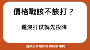 老闆決策思維 價格戰該不該打? 「這個月的促銷,我研究後準備把入會費打七折,然後再送入會會員五張七天免費體驗券、運動大背包一個….。」 「夏天到了,我們還可以年繳打對折,這樣一定很多人會想入會 閱讀更多 »